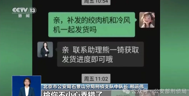 北京市公安局石景山分局刑侦支队中队长 邢运伟:对方态度特别好,说是不小心弄错了,补发一个新的。张女士就觉得,那就补发吧。这个时候对方提出加微信,能实时监测物品发送的过程。