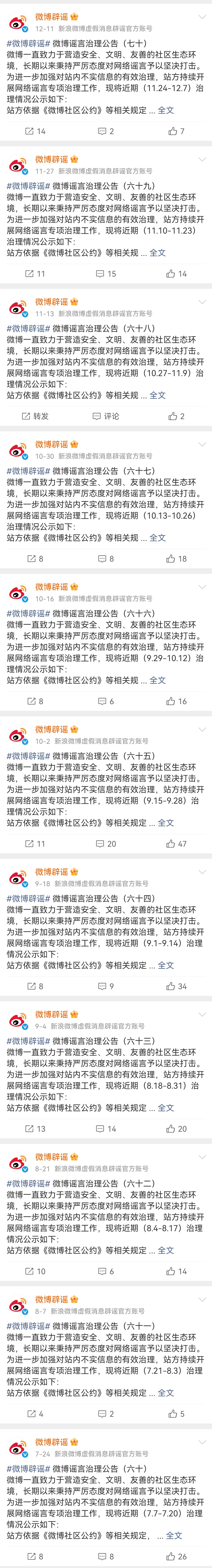 作品简介:@微博辟谣 定期发布治理公告,旨在通过公示曝光微博站内热评热议、突发灾害虚假摆拍等影响较大的谣言案例,通报站内相应首发账号惩处情况,强化警示震慑,遏制谣言传播。截至目前,已累计发布70 篇阶段性公告。