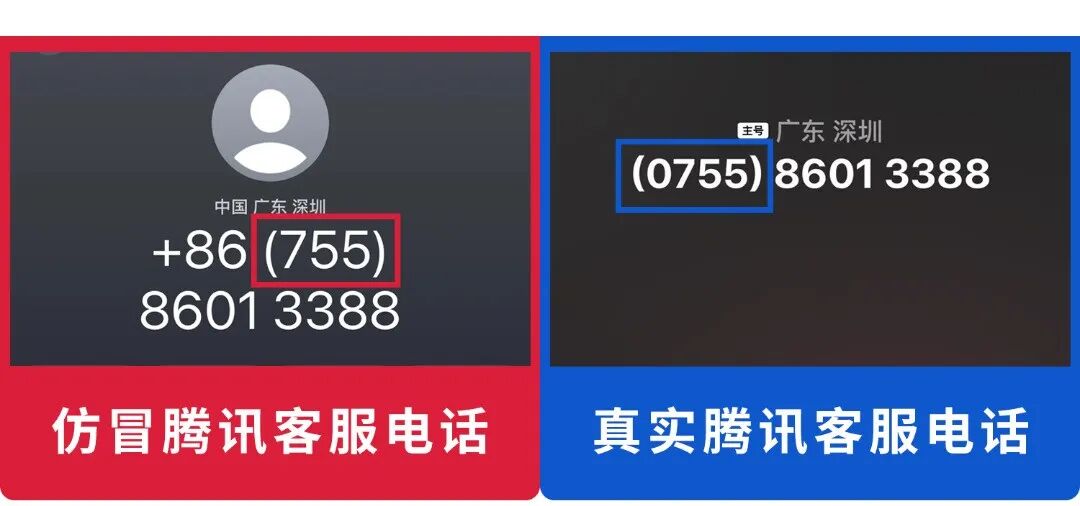 不法分子通过改号软件伪装成腾讯官方客服号码,实际并非微信官方来电。