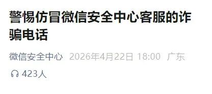 微信提醒:接到此类电话立即挂断!