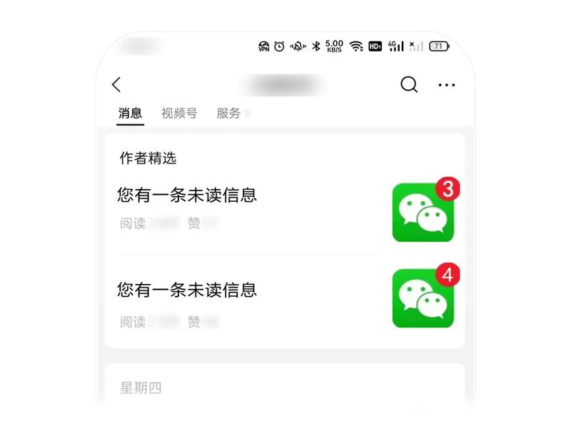 2 标题内容、封面采用未读消息提示形式/虚假视频播放键图片等诱导用户点击查看。