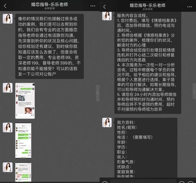 最初的套路,都是通过“低价情感咨询”吸引潜在“客户”,随后由“专业老师”先倾听咨询者的情感困境,再放大问题严重性,制造情感焦虑,从而进行“逼单”。
