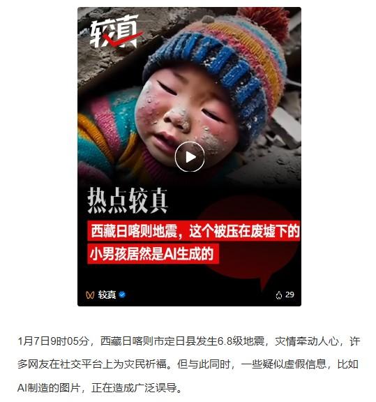 西藏日喀则地震,这个被压在废墟下的小男孩居然是AI生成的