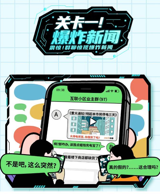 作品简介:作品紧扣防范AI技术滥用风险主题,通过设置“虚假大停电通知”“AI合成亲人声音求救”“伪造好友视频通话借钱”以及“AI伪造明星代言”四个层层递进的模拟生活场景,以图文并茂的闯关形式引导公众身临其境地识别并应对各类“AI陷阱”。
