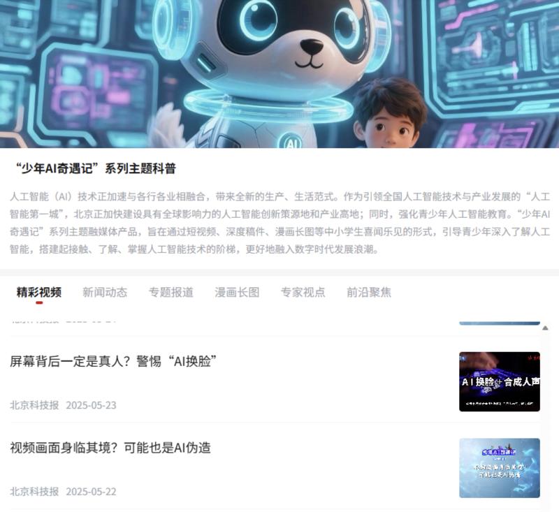 专题简介:专题致力于培育人工智能素养,提升青少年对于使用AI技术生成的互联网产品及谣言的辨别能力。打造“比特萌”虚拟IP形象,通过短视频、漫画、直播等形式带领青少年探讨AI技术前沿应用与社会议题,在趣味学习中体会技术的“双刃剑”特性。累计推出30余期辟谣作品,多条内容登上热搜榜,全网累计传播量突破1000万次。