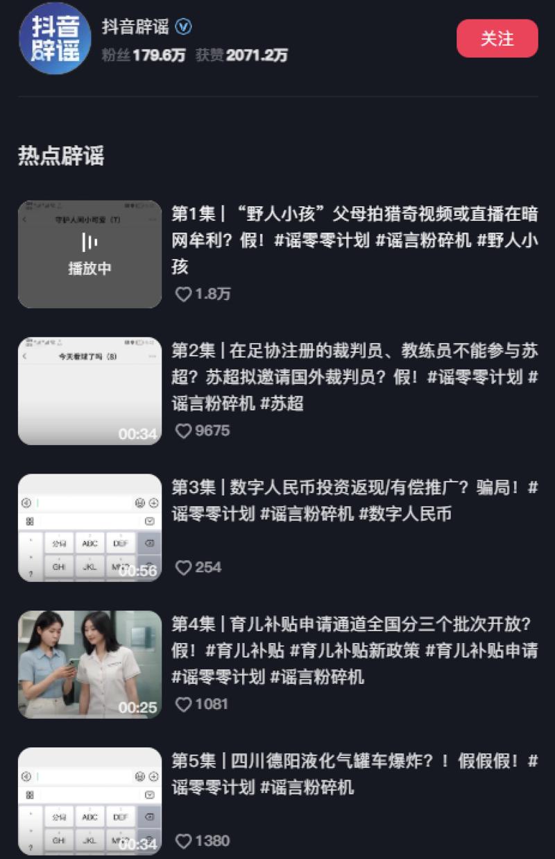 抖音“热点辟谣”