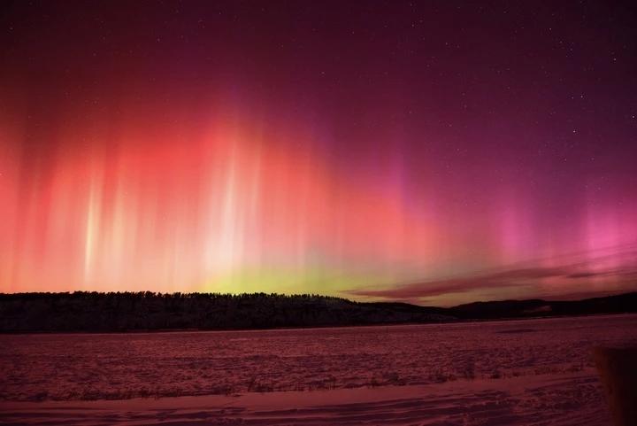 此次磁暴发生的同时,我国多地也上演了极光秀。
