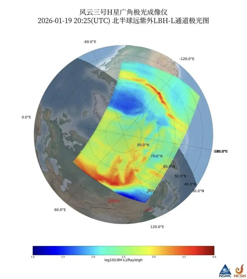 风云三号H星还从太空拍摄了北半球的极光图,由此可以直观看出哪些区域出现了极光。